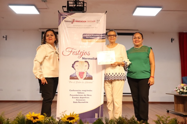 Durante el emotivo acto, se rindió homenaje a maestras y maestros que han dedicado 20, 30 y 40 años de servicio a la formación de docentes, destacando su entrega, vocación y amor por la enseñanza, cualidades que han contribuido de manera invaluable a preservar y fortalecer la esencia del normalismo tabasqueño y los ideales que distinguen a esta casa formadora de profesionales de la educación.
