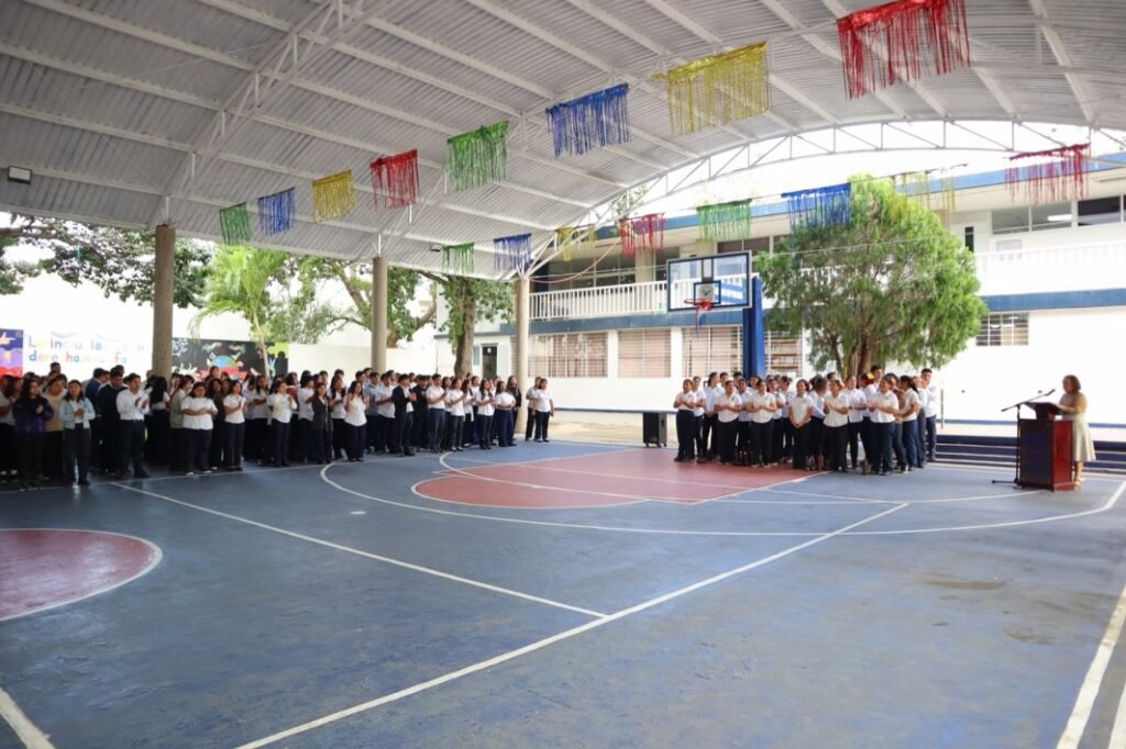 La entonación del Himno Nacional estuvo dirigida por Thania Ramos y Sebastián Márquez, mientras que el Juramento a la Bandera fue realizado por Angy Betzabe Guzmán. Las efemérides correspondientes a la semana fueron presentadas por las y los estudiantes Mishele, Angelique, Itzel, Xiomara, María Magdalena y Daniel Antonio.