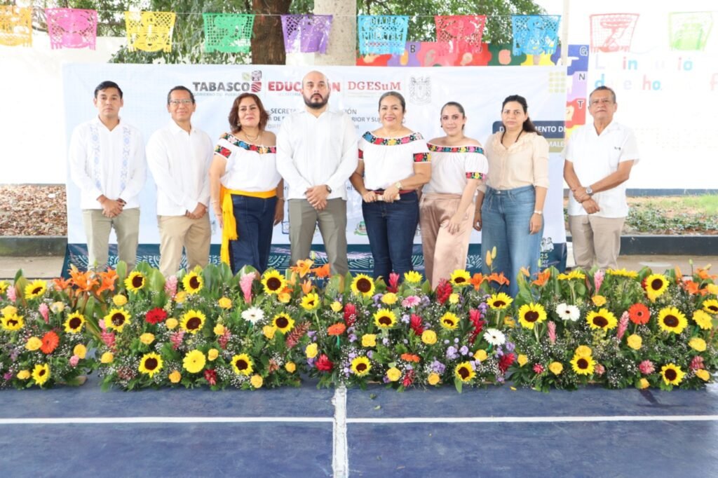 La Escuela Normal “Rosario María Gutiérrez Eskildsen”, Licenciatura en Educación Primaria, inició el programa con la interpretación de música tradicional tabasqueña a cargo de su grupo de tamborileros, seguida del bailable “Mis Blancas Mariposas” presentado por el taller de danza.
