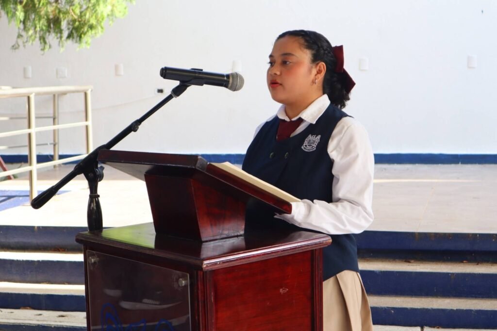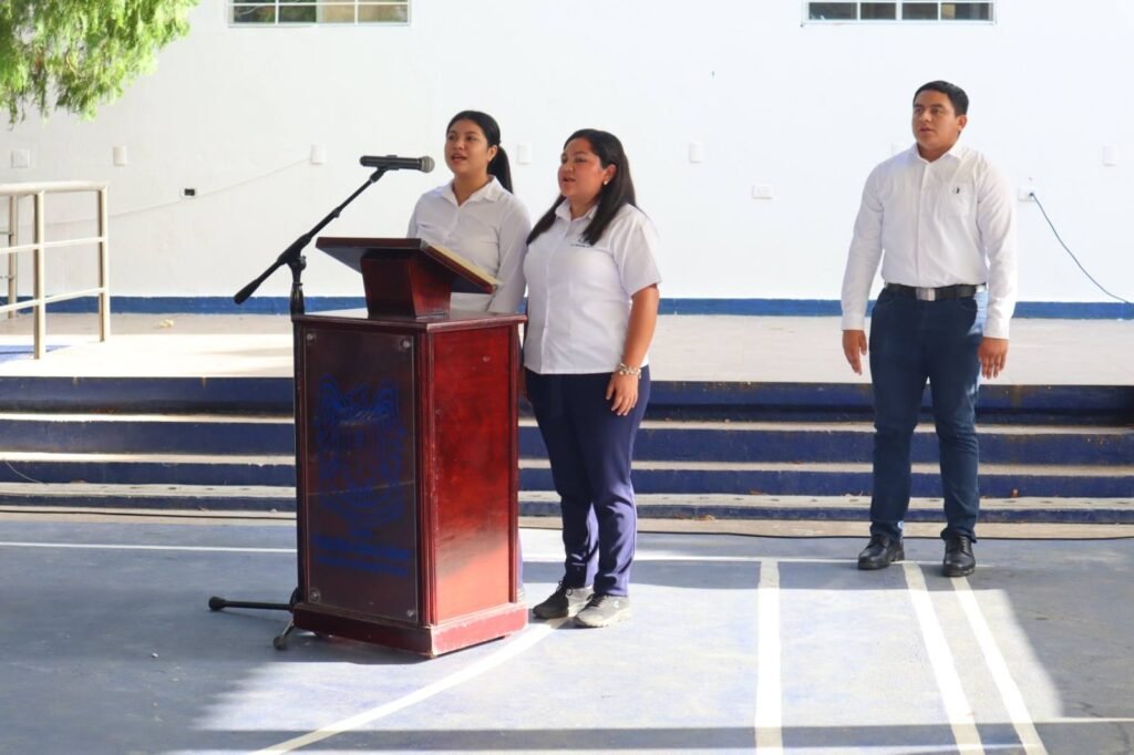 El Himno Nacional Mexicano fue entonado con respeto y fervor, bajo la guía de las alumnas Clara Misheell Hernández Sánchez y Estrella Guadalupe Gerónimo Jiménez, en un momento que convocó al orgullo de ser mexicanos.