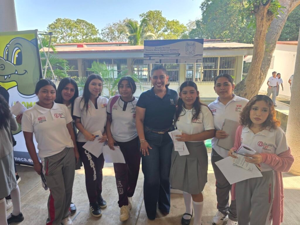 El equipo de Extensión y Difusión de la Escuela Normal de Educación Primaria “Rosario María Gutiérrez Eskildsen” participó en la Feria Profesiográfica organizada por el Plantel No. 27 del Colegio de Bachilleres de Tabasco (COBATAB), con el propósito de presentar la oferta educativa de la institución a estudiantes de nivel medio superior.
