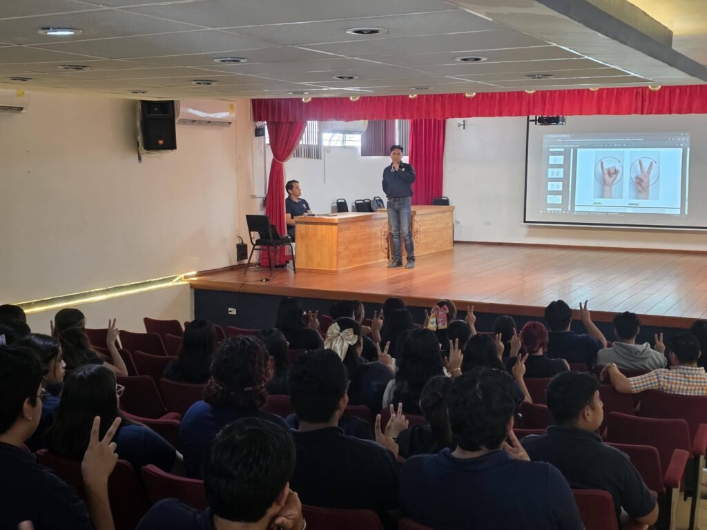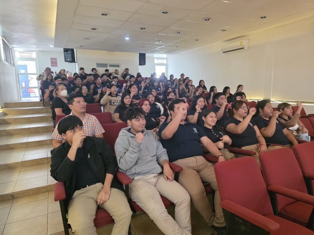 La actividad se llevó a cabo en el auditorio de la institución y fue impartida por el docente en formación Roberto Isaac Vasconcelos Sánchez, quien compartió conocimientos y herramientas básicas para el aprendizaje de la Lengua de Señas Mexicana.